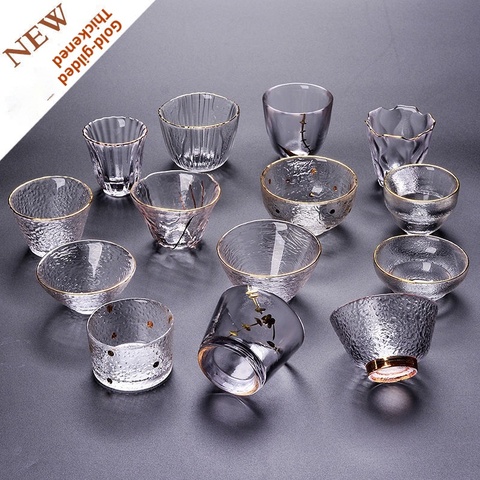 Petite tasse à vin en verre martelé à bord d'or moderne tasse à thé garnie d'or haute esthétique épaissie résistante à la chaleur 1-100ml